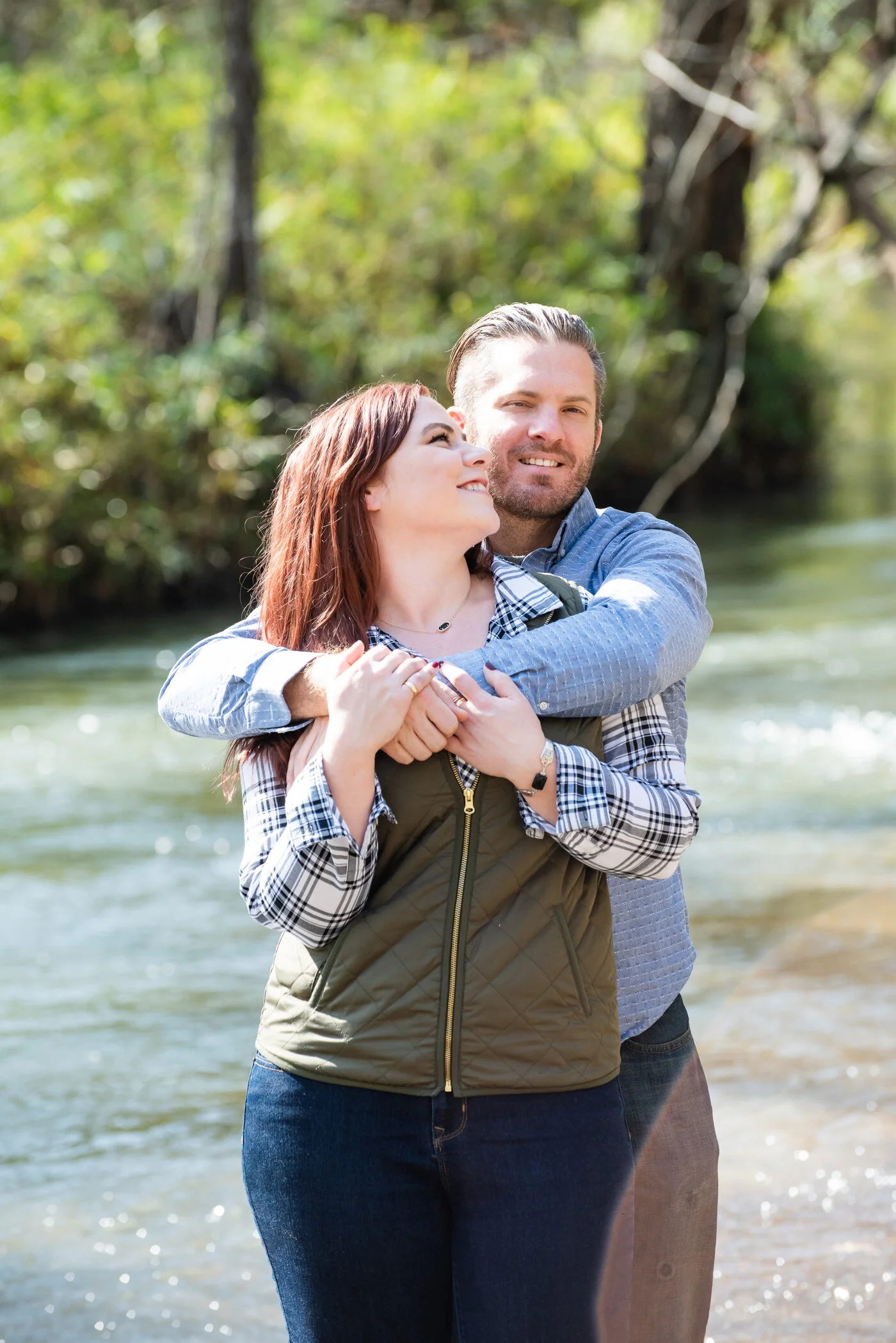 Lake Lure offers a million gorgeous backdrops for portrait sessions, even when the leaves are a bit past their prime. (Hurricane Zeta did a number on the fall foliage right before our session, but isn’t that just 2020 in a nutshell?) It makes my job an absolute joy, and we managed to squeeze in windy autumn roads, a mountain stream, a waterfall, and some brilliant leaves, all in one session.